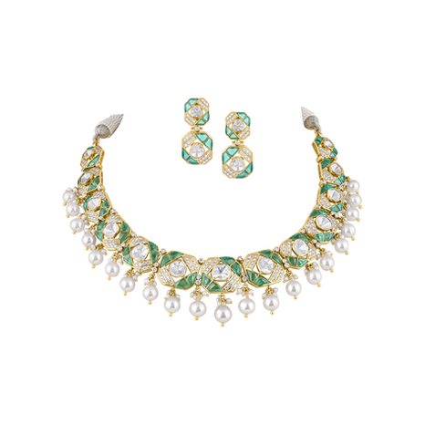 Explore our stunning Polki jewelry collection, featuring uncut diamonds set in intricate designs. Each piece exudes traditional charm and timeless elegance, perfect for special occasions. Handcrafted to perfection, our Polki jewelry combines heritage with modern aesthetics, offering a unique and luxurious addition to your collection.